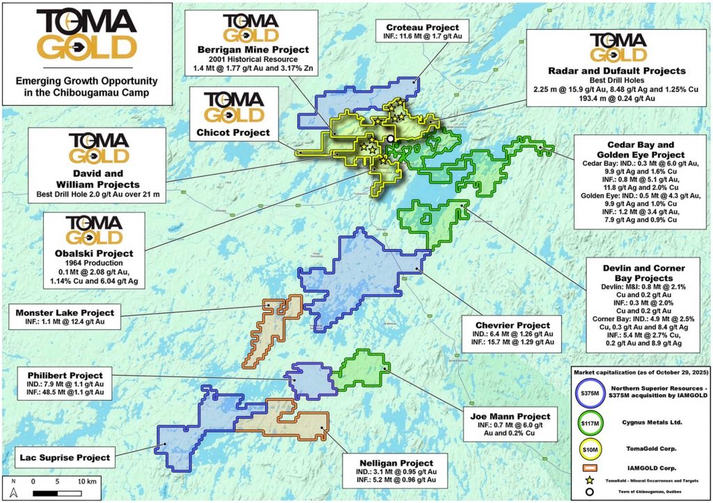 TomaGold Corp. (TSXV: LOT, OTCPK: TOGOF) is a Canadian junior mining company focused on the acquisition, exploration, and development of high-potential precious and base metal projects, with a primary focus on gold and copper in Quebec and Ontario.